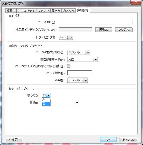 TCPDFでもFPDFでもFPDIでもFPDI_TMPLでもなんだかこのあたりの一群のライブラリはよく分かってなかったりしますが・・・・。 そもそも右綴じって? PDFのプロパティでこんな感じです。Acrobatで開いた時のプレファレンス。 英語で言うとBinding Directionで…
